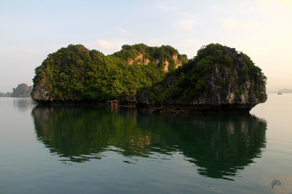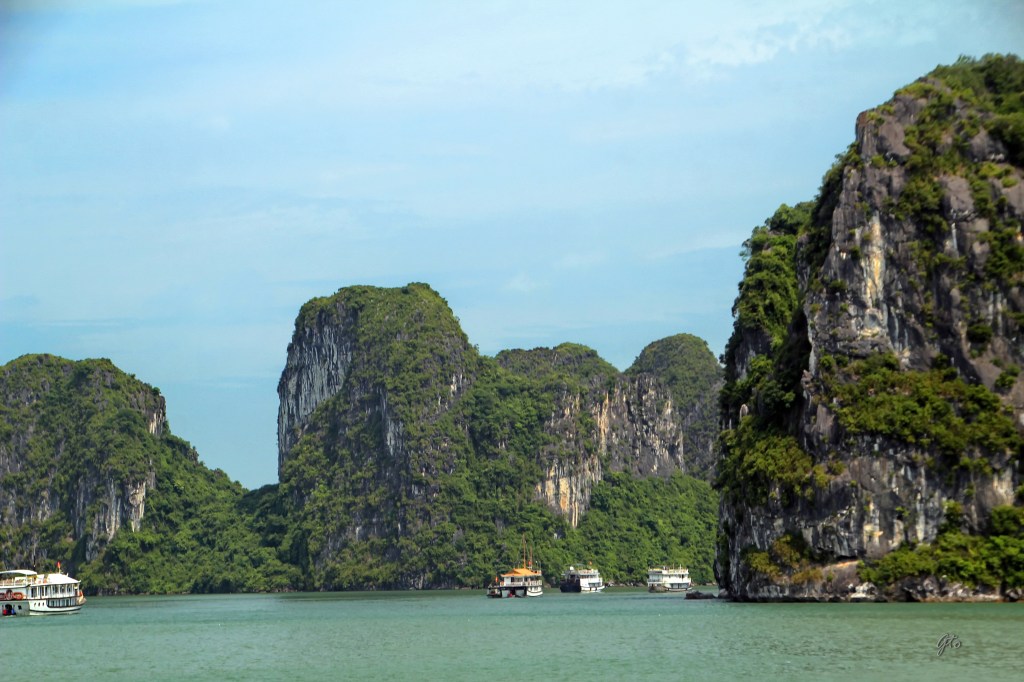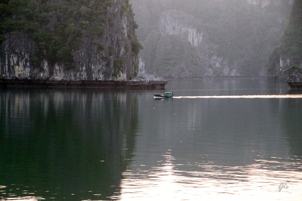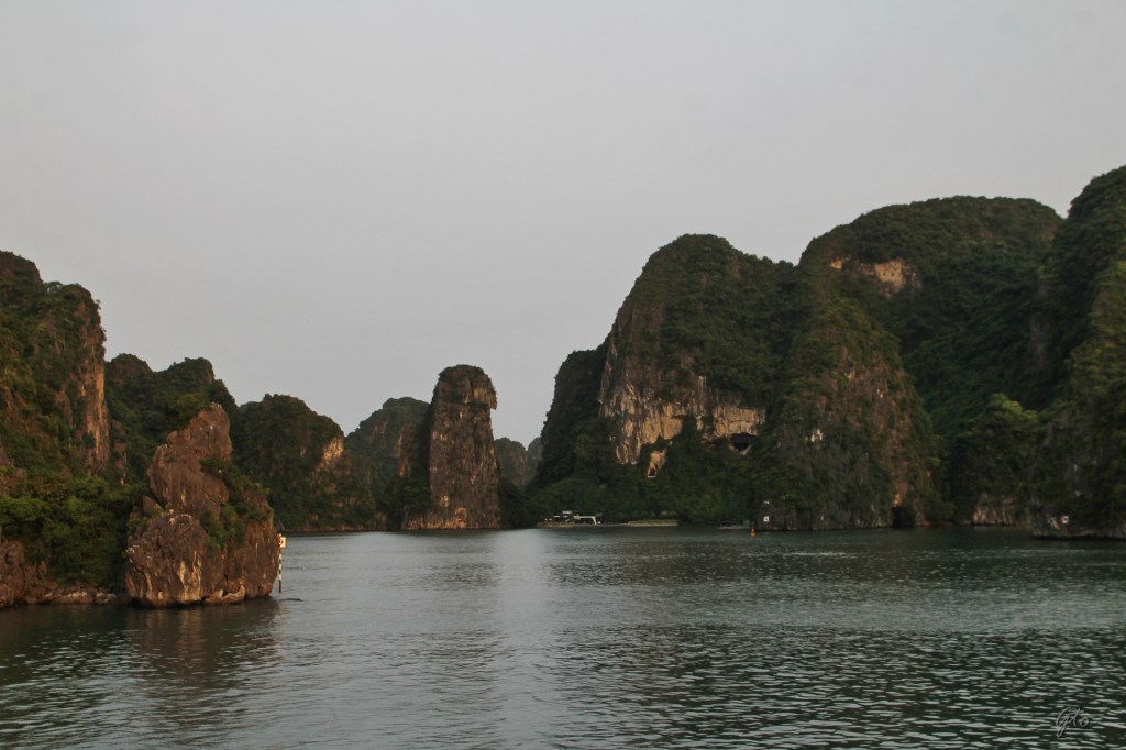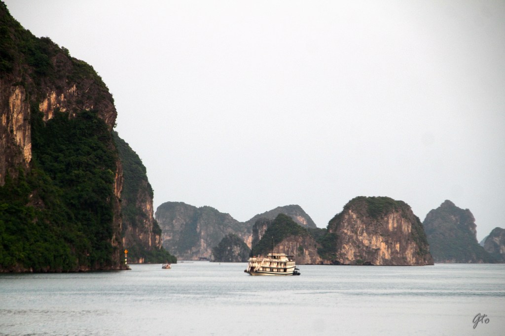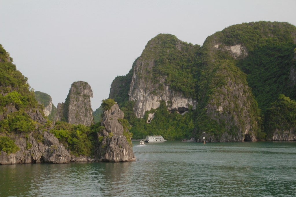 Nada mas llegar al barco, navegación hacia las islas de Halong. Lo que hace única a esta bahía son una increíble cantidad de islotes de origen karstico, que recuerda a los cayos del norte de república Dominicana, pero en Halong, hay cientos, vírgenes y de cientos de formas diferentes.