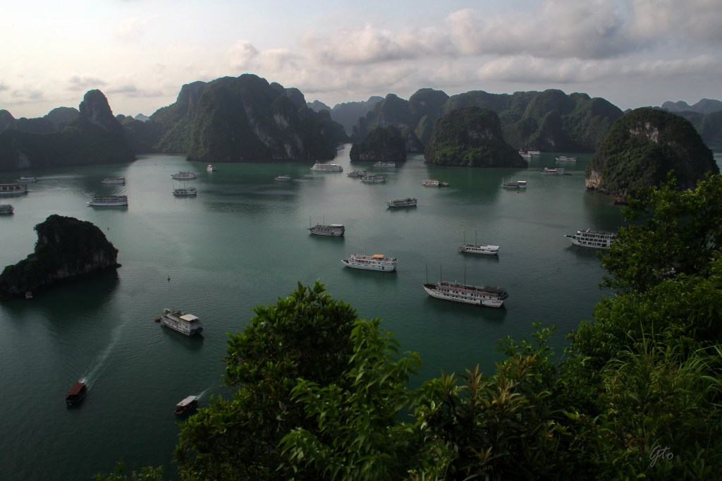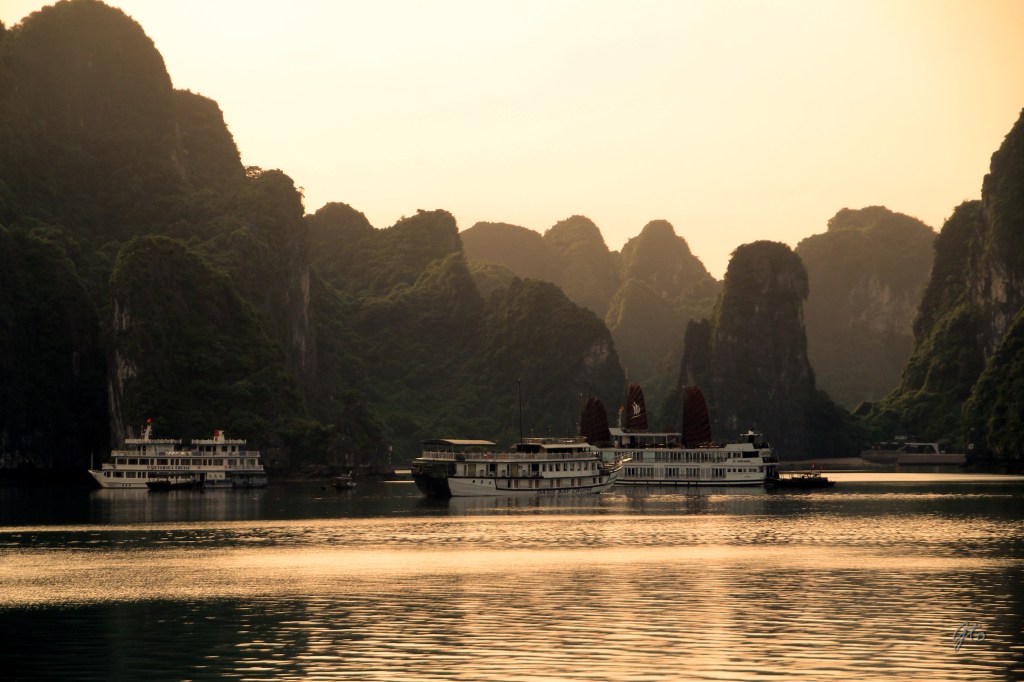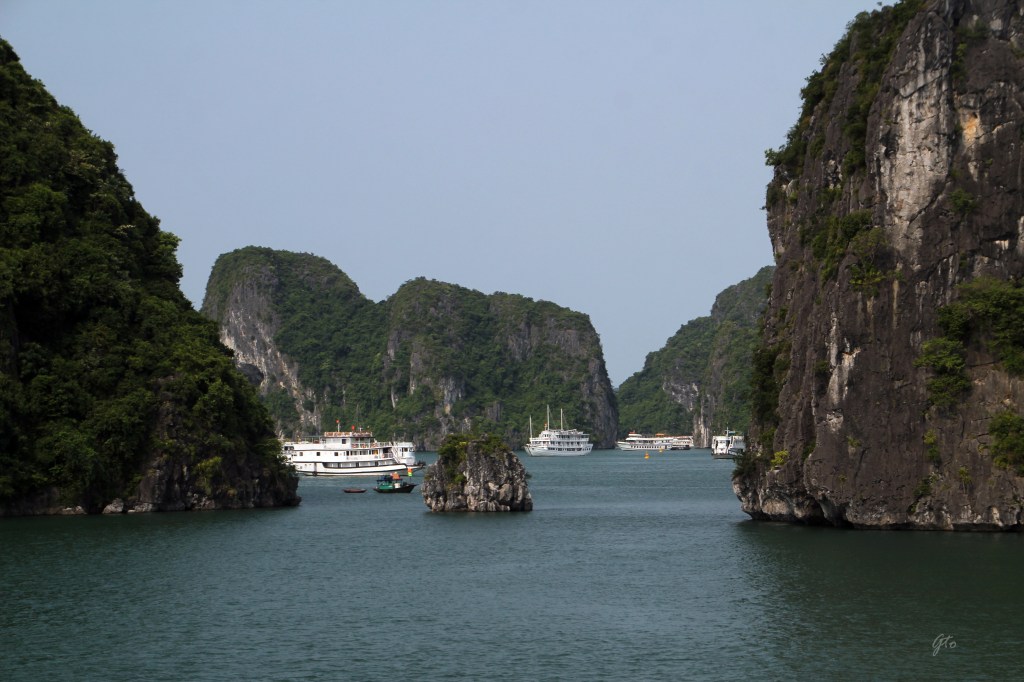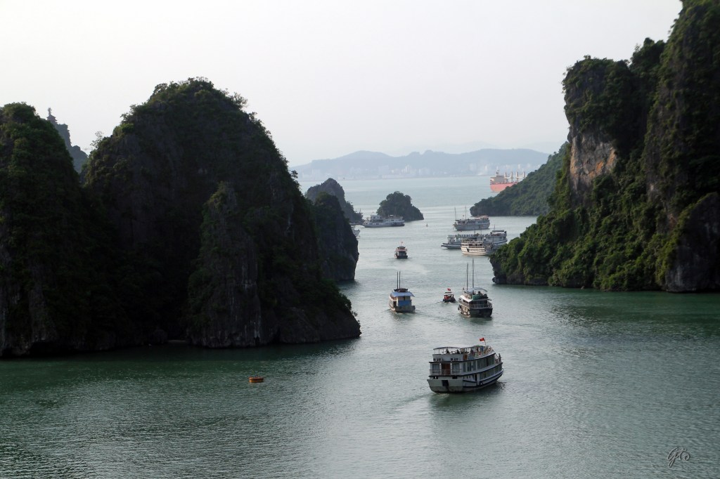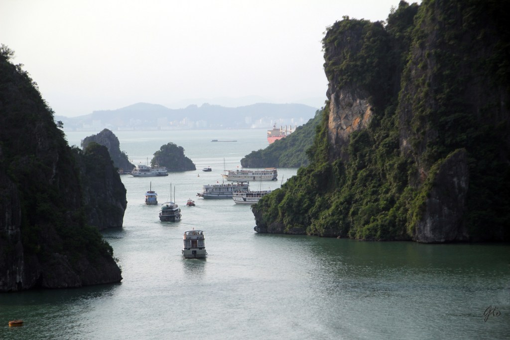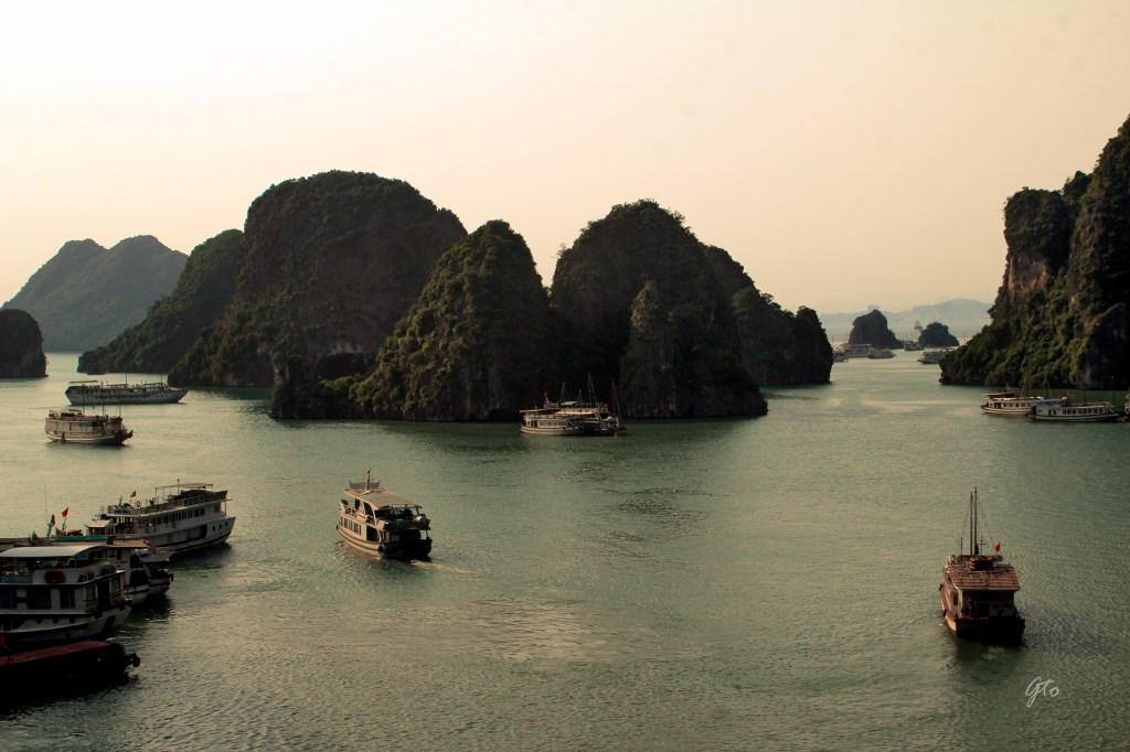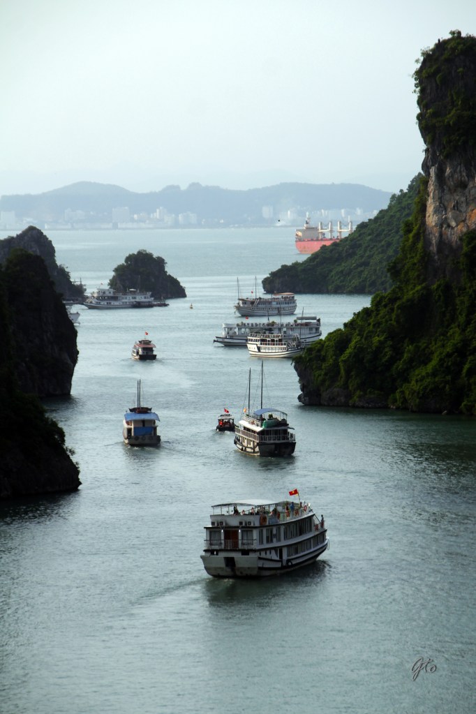 La ruta desde Hanoi al puerto de Cat ba, es de km, que en autobús se emplean poco mas de 2 horas, contemplando arrozales y el impresionante puente sobre el río Rojo, a la salida de Hanoi. Una vez en el puerto de Cat ba, contemplaras cientos y cientos de barcos crucero, en agosto, en temporada baja, muchos estaban amarrados en puerto, no quiero ni pensar todos esos barcos navegando a la vez por Halong.