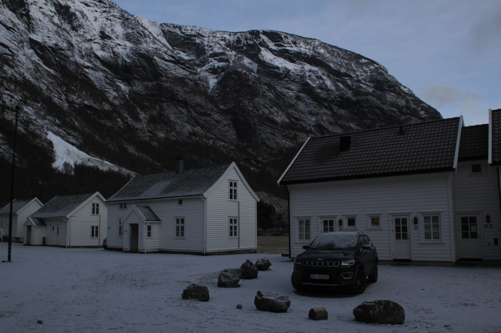 Al final del túnel, estaba Flam, en el tunel, entramos con luz, y salimos de noche… Nos dirigimos directamente a las casitas que habíamos reservado. Brekke Apartments.