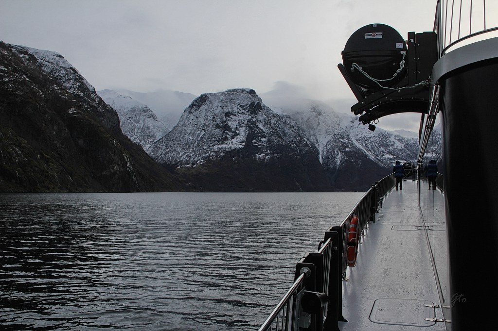 Tenemos amigos que han hecho el crucero de verano y nos hablan de lo bonito que son los fiordos en verano, todo verde y con cascadas impresionantes del deshielo, pero nosotros queríamos ver los fiordos de verdad, cuando están helados e imaginarnos la vida de los vikingos en este paraje hostil, y no en primavera. La verdad es que nos impresiono mucho todo lo que vimos, cataratas congeladas e incluso vimos cataratas de nieve. El barco de los fiordos es una pasada, con un diseño fururista, es eléctrico, lo cual se agradece enormemente por que al no producir ruido, magnifica la sensación de paz mientras navegas, aunque nos explicaron que es debido a la ausencia de contaminación en el fiordo, y la ausencia de ruidos, evita aludes de nieve.