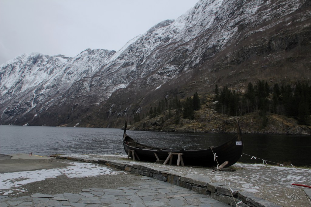 Bajamos a Flam a desayunar, y a comprar los billetes del barco que hace el crucero por el fiordo. Salen por 45 € un paseo de 2 horas en un precioso catamaran Eléctrico, desde Flam al pueblo vikingo de Gudvangen. Esto es el plato fuerte del viaje, las imagenes hablan por si mismas.