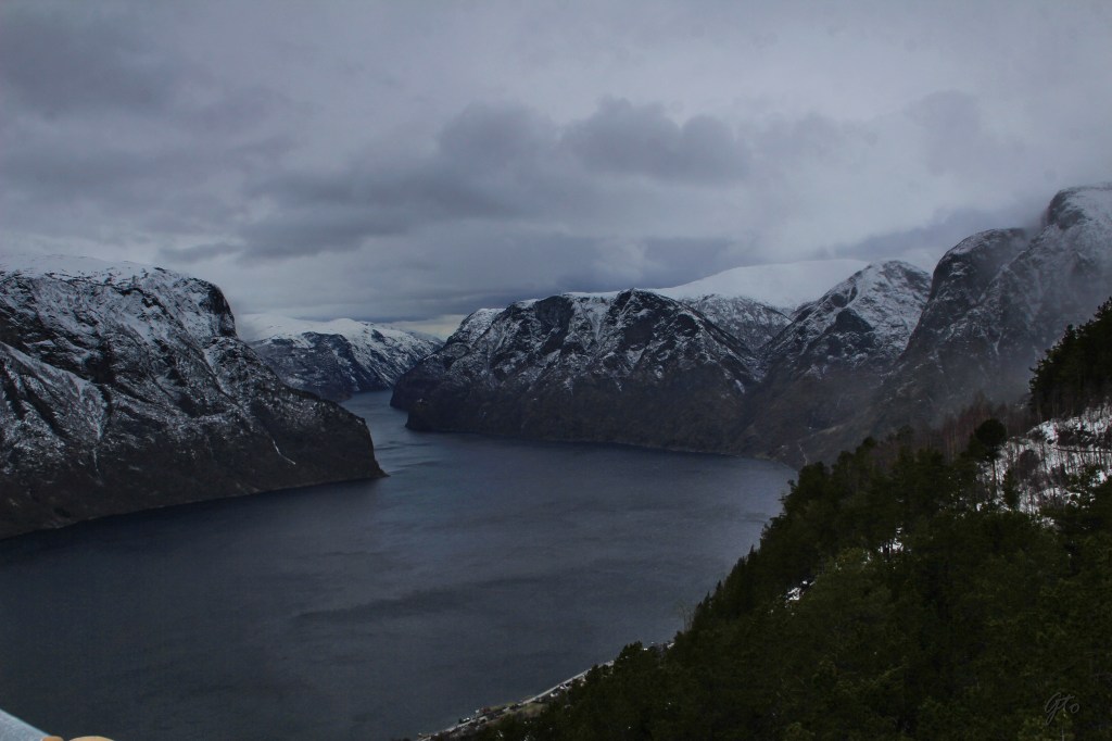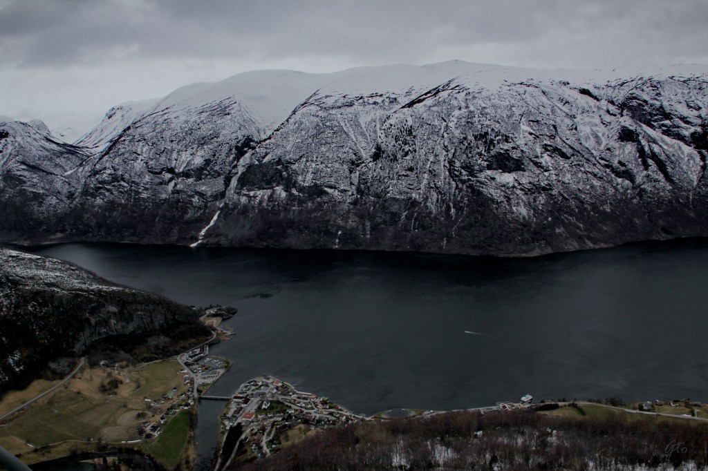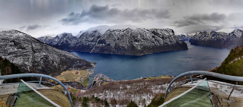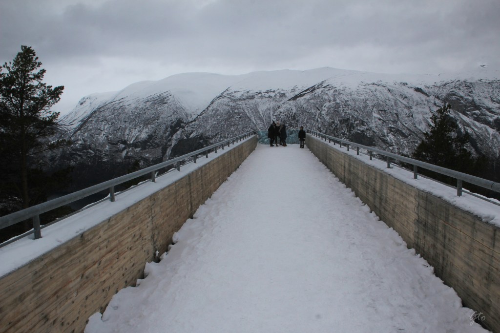 Las vistas desde Stegastein son espectaculares, a esa altura de 650 metros sobre el mar, se nota mas el frio, pero como dicen los noruegos, «no hace demasiado frío sino que, no vas lo suficientemente abrigado»